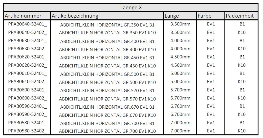ABDICHTL.KLEIN HORIZONTAL GR.450 EV1 K10 PPAB0620-524020