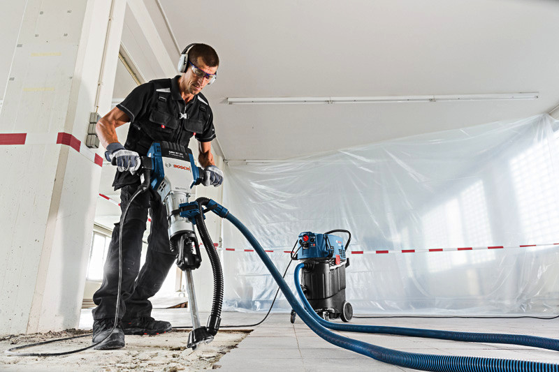 Systemzubehör GDE hex, Die Staubabsaugung GDE hex Professional ist die praktische und effektive Lösung für nahezu staubfreie Abbrucharbeiten. Sie ermöglicht sauberes Arbeiten, reduziert die Reinigungszeiten und erhöht die Sicherheit für den Benutzer. Sie kann schnell und einfach an verschiedenstem Zubehör befestigt werden und wurde für den Einsatz mit dem Bosch Click & Clean System konzipiert, was für ein hohes Maß an Komfort sorgt. Ihre Kompatibilität mit allen aktuellen Abbruchhämmern garantiert universelle Verwendungsmöglichkeiten.