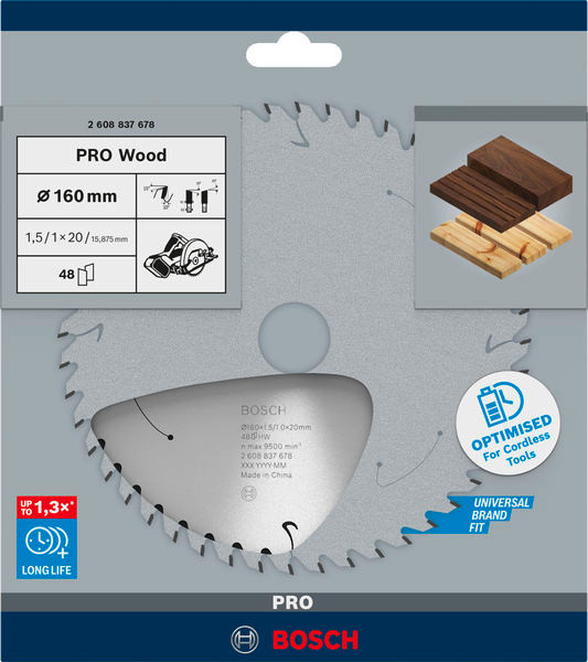 Herausragende Lebensdauer in Holz! Geschliffene und geschärfte feine Carbide-Zähne für Festigkeit, Langlebigkeit und Präzision Geht dir beim Schneiden von Holz mit deiner Akku-Säge die Batterie aus? Das PRO Wood cordless ist die Lösung. Wir haben die Schnittfuge extra dünn gemacht, sodass weniger Leistung erforderlich ist. Dank der Carbide-Zähne des Sägeblatts schneidet es Massivholz und Holzwerkstoffe aller Arten, solange der Akku hält. Wir haben das PRO Wood cordless Kreissägeblatt für Holzarbeiter entwickelt, die Akku-Sägen zum Schneiden von Massivholz und Holzwerkstoffen aller Arten verwenden. Dank seiner besonders dünnen Schnittfuge verursacht es weniger Reibung, verbraucht weniger Leistung und verlängert so die Akkulaufzeit. Unser Kreissägeblatt für Holz verfügt über starke Carbide-Zähne, sodass du präzise Schnitte und außergewöhnliche Leistung erzielen kannst – für einen langen Zeitraum.