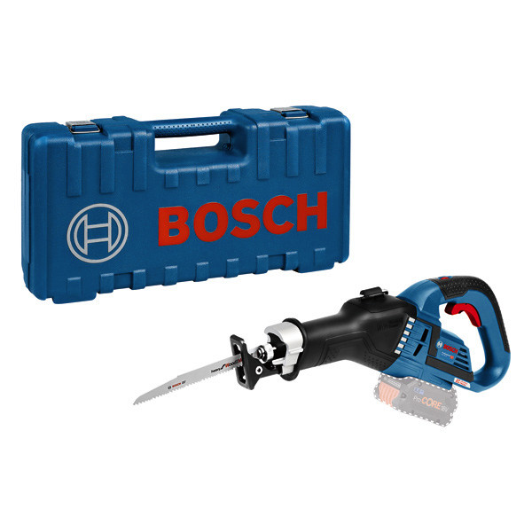 Akku-Säbelsäge GSA 18V-32, Höchstleistung kombiniert mit müheloser Bedienung: Die Akku-Säbelsäge GSA 18V-32 Professional bietet die ideale Kombination aus beeindruckender Leistung und angenehmen Handling. Ihr einzigartiger, ergonomisch geformter Handgriff und ein extra langer Schalter gewährleisten mehr Kontrolle bei schwierigen Arbeiten über Kopf oder auf beengtem Raum. Ausgestattet mit einem bürstenlosen Motor liefert diese Säbelsäge die Leistung eines kabelgebundenen Geräts, jedoch mit kabelloser Freiheit. Außerdem arbeitet sie äußerst vibrationsarm und sorgt somit für ermüdungsfreies Arbeiten. Die GSA 18V-32 Professional ist perfekt zum Sägen von Holz, Metall und Kunststoff sowie Holzverbundwerkstoffen und Isolationsmaterialien. Das Gerät ist kompatibel mit allen Bosch Professional 18V-Akkus und -Ladegeräten (Professional 18V System). Auch kompatibel mit AMPShare, der markenübergreifenden Akku-Allianz. Die GSA 18V-32 Professional bietet außerdem ein Doppel-LED-Licht, eine konstante Drehzahl, Pendelhub, Drehzahlvorwahl, werkzeuglose SDS-Sägeblattwechsel, einen Aufhängehaken, eine variable Drehzahl und Vibration Control. Handwerkerkoffer. 1 x Säbelsägeblatt S 1130 CF, Endurance for Heavy Metal (separat erhältlich als 5er-Pack: 2 608 657 528)