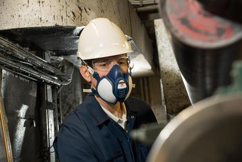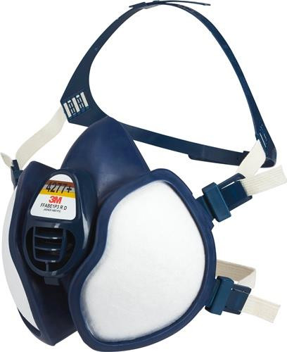 EN 405:2001+A1:2009 FFABE1P3 R D · wartungsfreie Mehrweg-Halbmaske, Verwendung bis Wechsel gemäß Filterwechselplan oder bis der Filter gesättigt ist · Doppel-Einatemventil und zwei große Aktivkohlefilter · mit integrierten Partikelfiltern · einfache Verwendung – direkt verwendbar und wartungsfrei · organische Dämpfe (gute Warneigenschaften und mit einem Siedepunktgrößer als65 °C), anorganische Dämpfe und saure Gase bis zum 30-fachen des Grenzwertes für Gase und Dämpfe oder 1000 ppm, je nachdem, welcher Wert niedriger ist, sowie bis zum 30-fachen des Grenzwertes für Partikel · weiche, hautfreundliche Gesichtsabdichtung · TPE-Thermoplastischer Elastomer · Anwendung: zum Schutz vor vielen der gängigen Gase, Dämpfe und Partikel im Industrieumfeld Weitere technische Eigenschaften: · Schutzstufe: FFABE1P3 R D · prüfpflichtig: ja