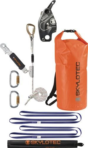 bietet die perfekte Ausstattung zur Absturzsicherung bei Arbeiten auf hochgelegenen Arbeitsplätzen am Bau oder auf Dächern · das mitlaufende Auffanggerät 20 Meter (SKN BFD Sk11) ist dank seiner Kanteneignung hervorragend für das horizontale Arbeiten an Absturzkanten geeignet · zudem beinhaltet das SET das kompakte und leistungsstarke Abseilgerät SIRIUS, welches im Notfall für eine Rettung eingesetzt werden kann · ein Stahlkarabiner mit Tri-Lock Sicherung (OVALSTEEL TRI) sowie zwei Bandschlingen (LOOP 26kN) komplettieren das Set · alle Komponenten werden im mitgelieferten DRYBAG verpackt und können so praktisch zum Einsatzort transportiert werden Weitere technische Eigenschaften: · prüfpflichtig: ja