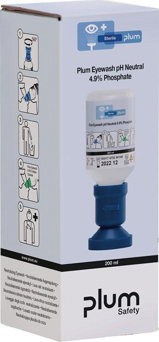 bei Verätzungsgefahr · sterile Phosphatpufferlösung (4,9%) im geschützten Einzelkarton · für die schnelle Neutralisierung von Säuren und Alkali · zur Nachfüllung der Augen-Notfallstation (und für den Einzeleinsatz geeignet) Weitere technische Eigenschaften: · Ausführung: 4,9% Phosphatpufferlösung, im Einzelkarton · Tiefe ca.: 58mm · Haltbarkeit: 3 Jahre (ungeöffnete Flasche) · Höhe ca.: 163mm · Breite ca.: 58mm · prüfpflichtig: ja