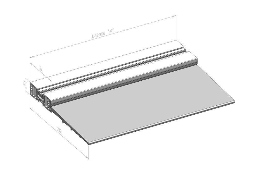 SIEGENIA Bodenschwelle PORTAL Eco Pass R; Ausführung: für Rahmenteil; Material: Aluminium; Einsatzbereich: Hebeschiebe; Basis: Bodenschwelle; Größe: 300; Fensterwerkstoff: Kunststoff; Länge: 3.000mm; Farbton: silber; Befestigungssystem: zum Anschrauben; Befestigungsart: verdeckt verschraubt