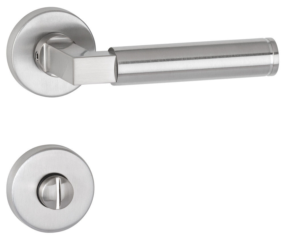 Bad-Drückergarnitur 1831 INFINITY mit Rosetten 2036 KB Ausf.: BAD mit Riegel 3212/3216 - 6 mm Vierkant mit Hülse 7/8 mm, Türstärke 38 - 42 mm Oberfl. 60 (Edelstahl matt)