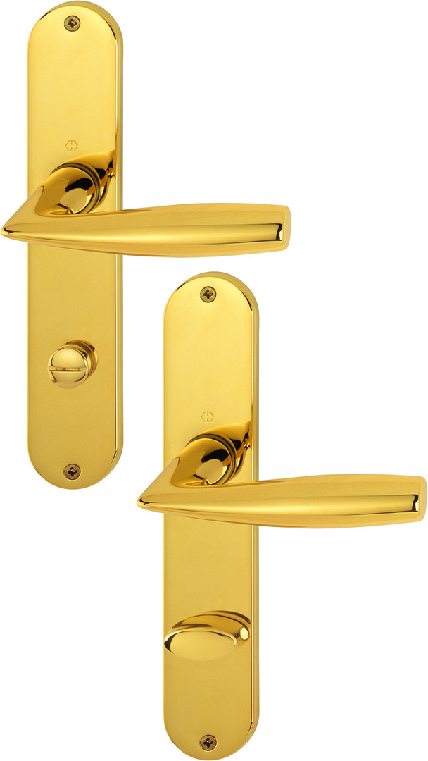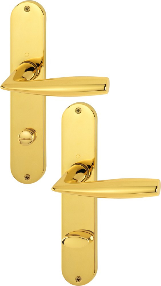 Zimmertür Drückergarnitur Modell Vitória mit abgerundetem Langschild, Verschraubung sichtbar mit Holzschrauben, mit Schnellstift-Verbindung