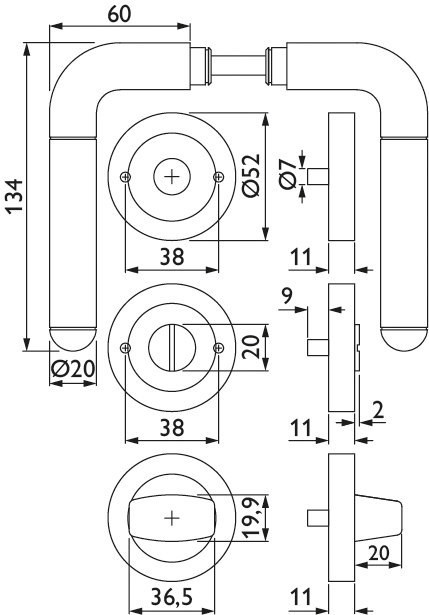 | Befestigungsart Drückerrosette (außen) | verdeckt verschraubt |