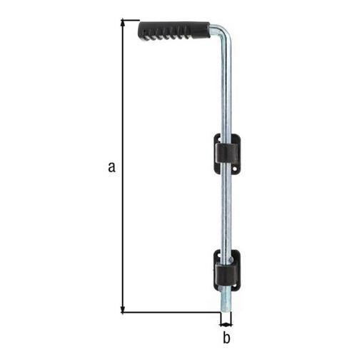 mit zwei Kunststoffführungen und Kunststoffgriff · Material: Stahl · Führungswinkel und Griff glasfaserverstärkter Kunststoff Weitere technische Eigenschaften: · Maß a: 400mm · Anzahl Löcher: 4 · Oberfläche: galvanisch verzinkt, dickschichtpassiviert · Maß b Ø: 16mm