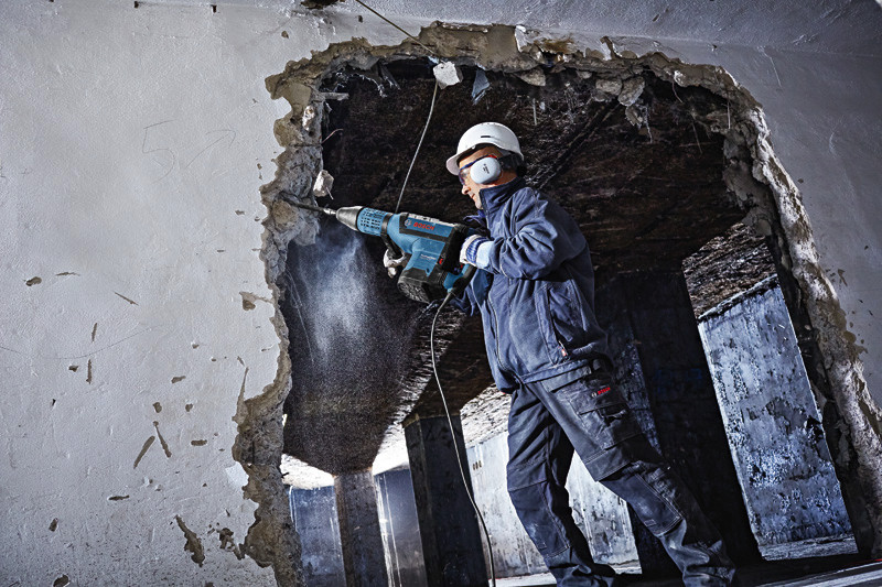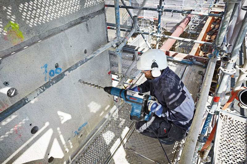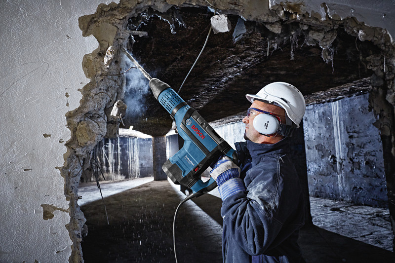Bohrhammer mit SDS max GBH 12-52 DV, Der GBH 12-52 DV Professional ist der stärkste kabelgebundene Bosch SDS max Bohrhammer mit Vibration Control. Sein hochklassiger Motor ermöglicht Höchstleistung bei SDS max Anwendungen. Dieser extrem leistungsstarke Motor des Bohrhammers liefert die Abgabe von 19 Joule Schlagenergie, ideal für harte Meißelarbeiten. Er ist auf Langlebigkeit ausgelegt und zeichnet sich durch extrem robuste Metallteile aus. Dieses Elektrowerkzeug eignet sich für Bohrungen bis zu einem Durchmesser von 52 mm sowie für schwere Meißelarbeiten in Beton und Stein. Es ist kompatibel mit verschiedenen Systemzubehören zur Staubabsaugung. Der GBH 12-52 DV Professional verfügt über konstante Drehzahl, einen Wiederanlaufschutz, eine Überlastkupplung, Drehzahlvorwahl und Vibration Control für müheloses Arbeiten bei andauernden und zeitintensiven Anwendungen. Handwerkerkoffer (ET-Nr. 1 615 438 705). 1x Zusatzgriff (1 607 000 C4E). Fetttube (ET-Nr. 1 615 430 010). Maschinentuch