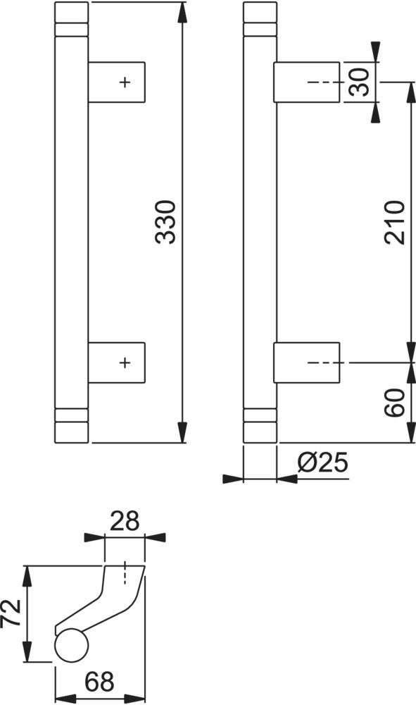 Bügelgriff, gerade Form Ø 25 mm