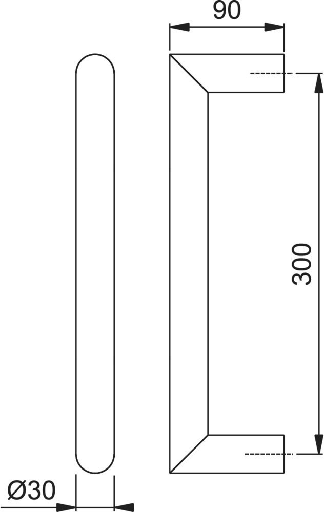 Bügelgriff, gerade Form Ø 30 mm F69 Edelstahl matt / 300 mm / BS-1102 (für