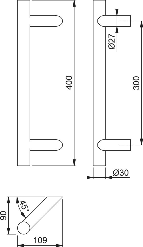 Bügelgriff, gerade Form Ø 30 mm F69 Edelstahl matt / 400 mm / 300 mm / 2 /