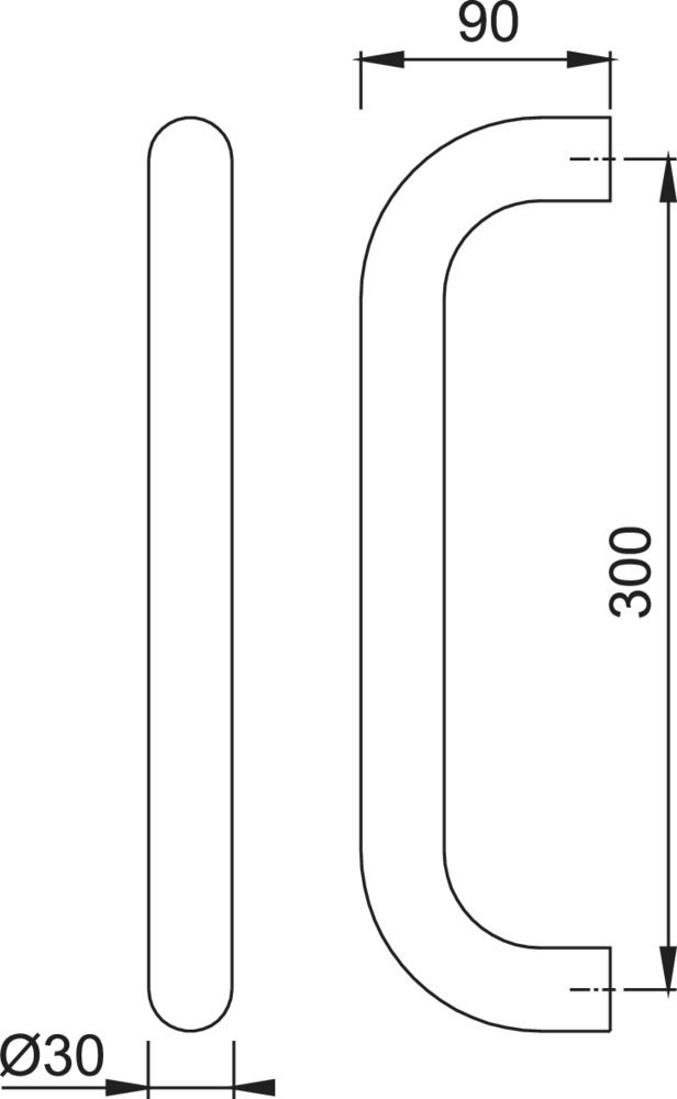Bügelgriff, gerade Form Ø 30 mmF1 Aluminium silberfarben / 300 mm /