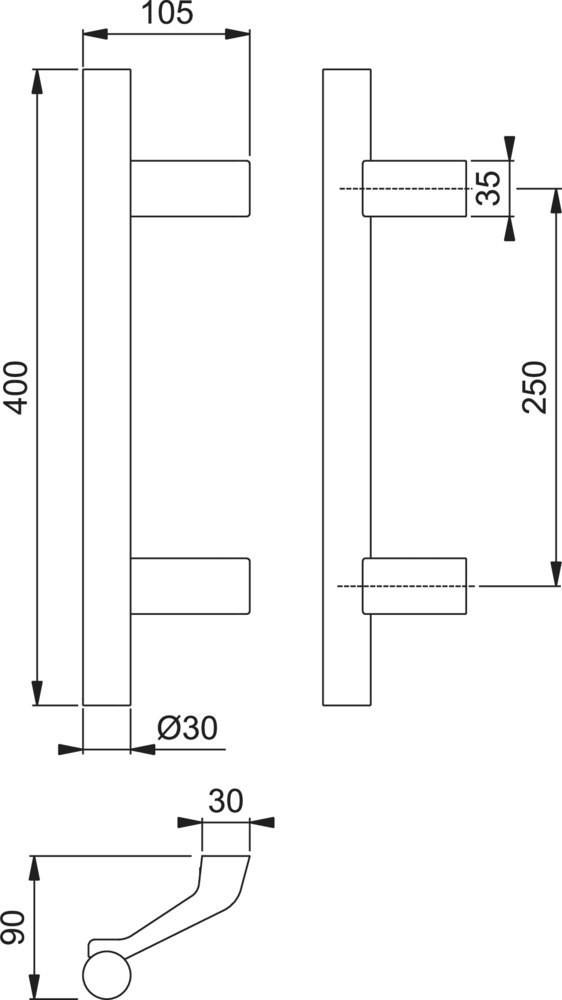 Bügelgriff, gerade Form Ø 30 mm