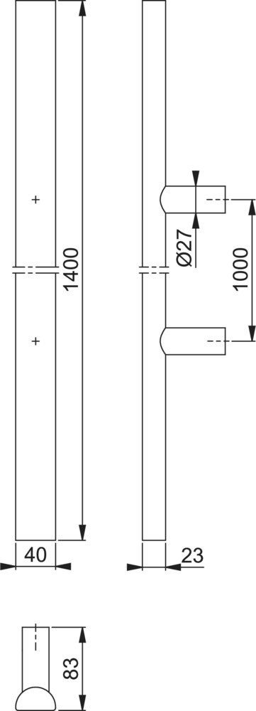Bügelgriff, Stangenform, D-ProfilF69 Edelstahl matt / 1400 mm / 1000 mm / 2 / 200 mm / 1200 mm / BS-1102 (für einseitige Befestigung bzw. für Bügelgriffe mit einem Ø von 25, 30 o. 34 mm) / Stück / HOPPE-Logo