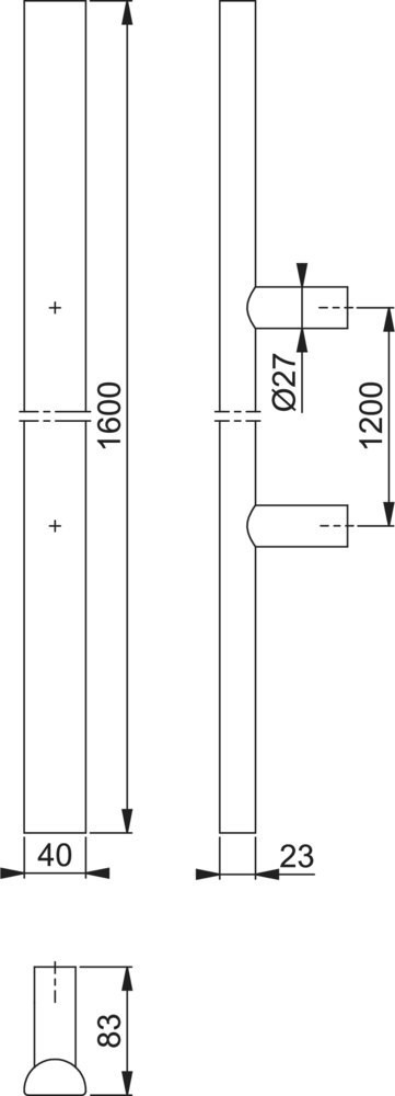 Bügelgriff, Stangenform, D-ProfilF69 Edelstahl matt / 1600 mm / 1200 mm / 2 / 200 mm / 1400 mm / BS-1102 (für einseitige Befestigung bzw. für Bügelgriffe mit einem Ø von 25, 30 o. 34 mm) / Stück / HOPPE-Logo