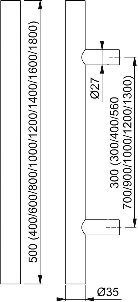 Bügelgriff, gerade Form Ø 35 mm