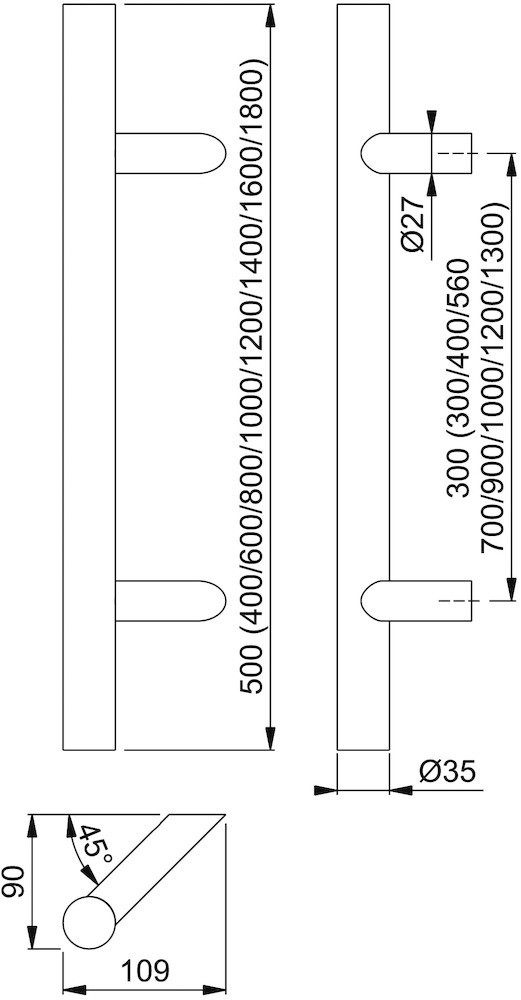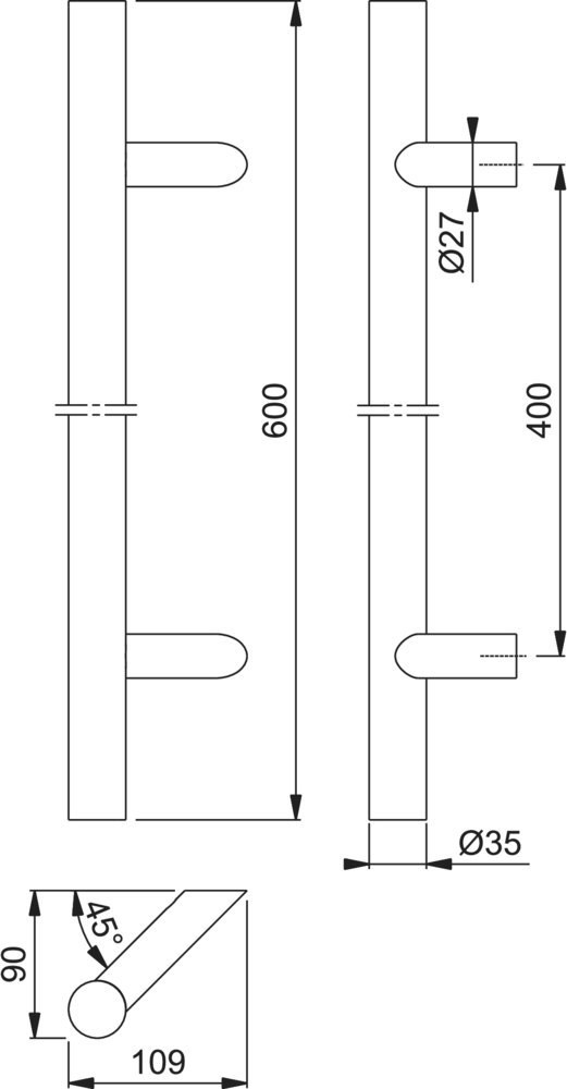 Bügelgriff, gerade Form Ø 35 mm