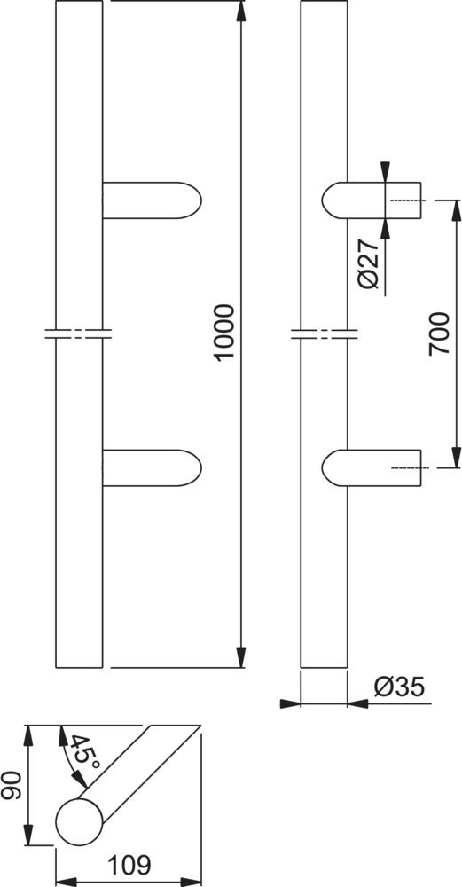 Bügelgriff, gerade Form Ø 35 mm