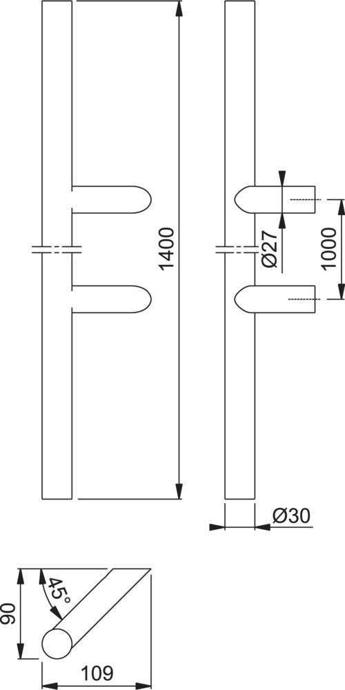Bügelgriff, gerade Form Ø 30 mmF9714M schwarz matt / 1400 mm / 1000 mm / 2 / 200 mm / 1200 mm / BS-1102 (für einseitige Befestigung bzw. für Bügelgriffe mit einem Ø von 25, 30 o. 34 mm) / Stück / 1 Einheit/Beutel / HOPPE-Logo