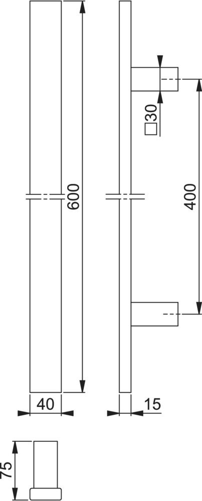 Bügelgriff, gerade Form 40x15 mmF9714M schwarz matt / 600 mm / 400 mm / 2 / 100 mm / 500 mm / BS-1102 (für einseitige Befestigung bzw. für Bügelgriffe mit einem Ø von 25, 30 o. 34 mm) / Stück / HOPPE-Logo / 1 Einheit/Beutel / à 5/Umkarton