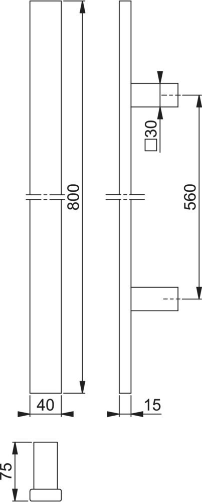 Bügelgriff, gerade Form 40x15 mmF9714M schwarz matt / 800 mm / 560 mm / 2 / 120 mm / 680 mm / BS-1102 (für einseitige Befestigung bzw. für Bügelgriffe mit einem Ø von 25, 30 o. 34 mm) / Stück / HOPPE-Logo / 1 Einheit/Beutel / à 5/Umkarton