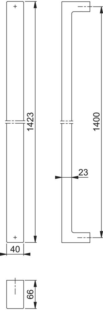 Bügelgriff, gerade Form, D-ProfilF69 Edelstahl matt / 1400 mm / BS-1102 (für einseitige Befestigung bzw. für Bügelgriffe mit einem Ø von 25, 30 o. 34 mm) / Stück / HOPPE-Logo
