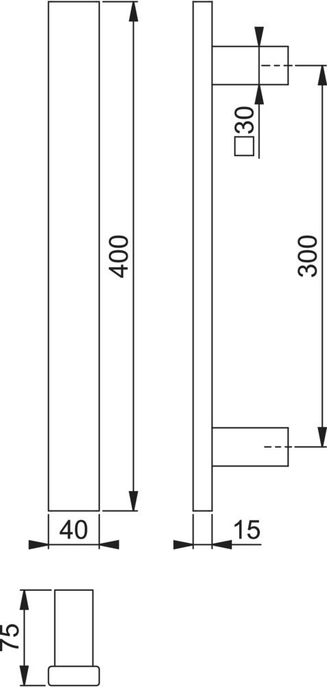• HOPPE-Edelstahl-Bügelgriff, rechteckige Stangenform: mit geraden, quadratischen Stützen• Bügelgriff-Befestigungs-System-Nr. 11 (2 x BS-1102)