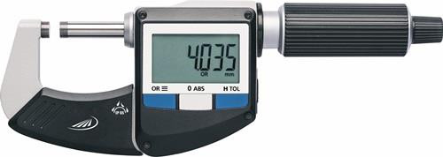 digital · IP65 · LCD-Anzeige 10 mm · Messspindel rostfrei, gehärtet und geschliffen · Hartmetall-Messflächen · Stahlbügel lackiert, wärmeisoliert · Spindel-Ø 6,5 mm · Steigung 0,5 mm · vorgezogene Friktionskupplung Funktionen: ON/OFF · QuickStart-Elektronik · QuickLock-Funktion · Nullsetzen an beliebiger Stelle · mm/inch · ABS (Nullsetzen der Anzeige, ohne Bezug zum PRESET zu verlieren) · Origin (Maßvoreinstellung) · HOLD (Tastatursperre) Weitere technische Eigenschaften: · Steigung: 0,5mm · prüfpflichtig: ja