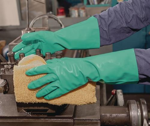 nach EN 388 · EN 374 · Kat. III · Material: Nitril · AQL: 1,5 · velourisiert · silikonfreie Herstellung · für den Umgang mit verdünnten, sowie konzentrierten Pestiziden gemäß ISO 18889 (G2) zugelassen · Rautenmuster für guten Griff in feuchter Umgebung und bei rutschigen Gegenständen · hervorragende Abriebfestigkeit · lebensmittelgeeignet · paarweise im Polybeutel mit Eurolochung · Einsatzbereich: Lebensmittelindustrie, Reinigung, Haushalt, Druckereien, chemische Industrie etc. Weitere technische Eigenschaften: · Stärke ca.: 0,38mm · Werkstoffeignung Lebensmittel: sehr gut geeignet · Werkstoffeignung Industrie: sehr gut geeignet · Ausführung: lebensmittelgeeignet, velourisiert · Werkstoffeignung Montage + Werkstatt: sehr gut geeignet · Werkstoffeignung Handwerk: bedingt geeignet · Abriebfestigkeit: 4 · Schnittfestigkeit (Schneidetest): 1 · Werkstoffeignung Bau + Garten: sehr gut geeignet · prüfpflichtig: ja · Weiterreißfestigkeit: 0 · Stichfestigkeit: 1 · Chemikalienfestigkeit: A = Methanol / J = n-Heptan / K = Natriumhydroxid 40 % / L = Schwefelsäure 96 % / M = Salpetersäure 65 % / N = Essigsäure 99 % / O = Ammoniakwasser 25 % / P = Wasserstoffperoxid 30 % / T = Formaldehyd 37 %