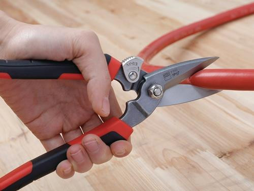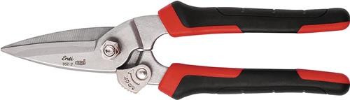 Schneide und Griff in einem Stück · geschmiedet · Schneide mit Verzahnung für abrutschsicheres Arbeiten · ERGO-Griff für ermüdungsarmes Arbeiten · sandgestrahlte, verchromte Klingen zum Schutz vor Korrosion · Schneidet bis zu 0,6 mm dicken, kaltgewalzten Stahl · SB-verpackt Weitere technische Eigenschaften: · für Materialstärke: bis 0,6mm · Griff: 2-Komponentengriff