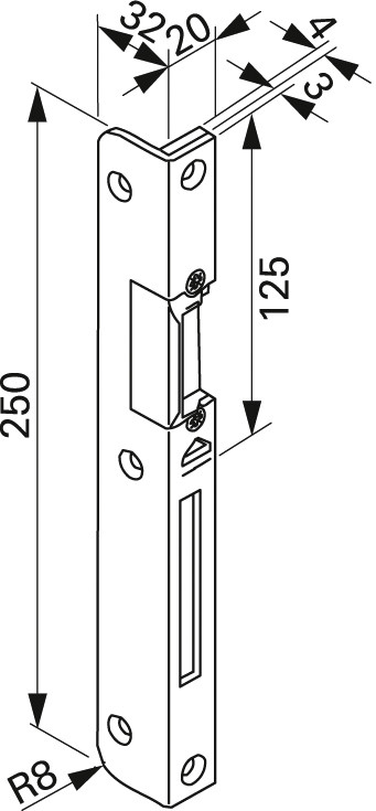 Abschlusstür,Winkelschließblech,für Türöffner,Stahl,Euronut 7/8,mit Fallenausschnitt,mit Riegelausschnitt,zum Aufschrauben,Türmat. Holz,RotoSil,Achsmaß 10mm,Falzluft 12mm,Falztiefe 20mm,abgerundet,Schließblechbreite 20mm,Schließblechlänge 250mm,Schließblechtiefe 32mm,Schließblechstärke 3mm,einflügelig,DIN Links