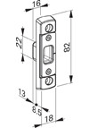 Abschlusstür,Schließplatte,für Mehrfachverriegelung,Stulp 18,Stahl,glatter Falz,zum Einfräsen,verstellbar,mit Topf,Türmat. Holz,RotoSil,Achsmaß 9mm,Falzluft 12mm,Falztiefe 18mm für Bolzen,,einflügelig,DIN Links-Rechts