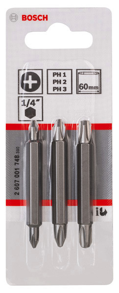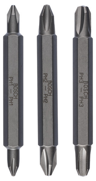 Doppelklingenbit-Set, 3-teilig, PH1, PH1, PH2, PH2, PH3, PH3, 60 mm
