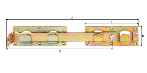 Befestigung eines Vorhängeschlosses möglich · Material: Stahl · Oberfläche: galvanisch verzinkt Weitere technische Eigenschaften: · Material: Stahl roh · Maß a: 423mm · Maß b: 70mm · Maß c: 180mm · Maß d: 333mm