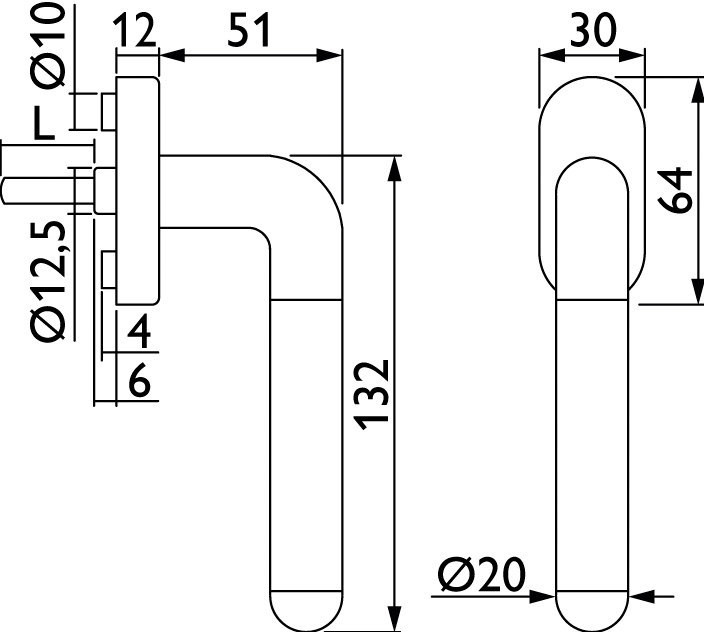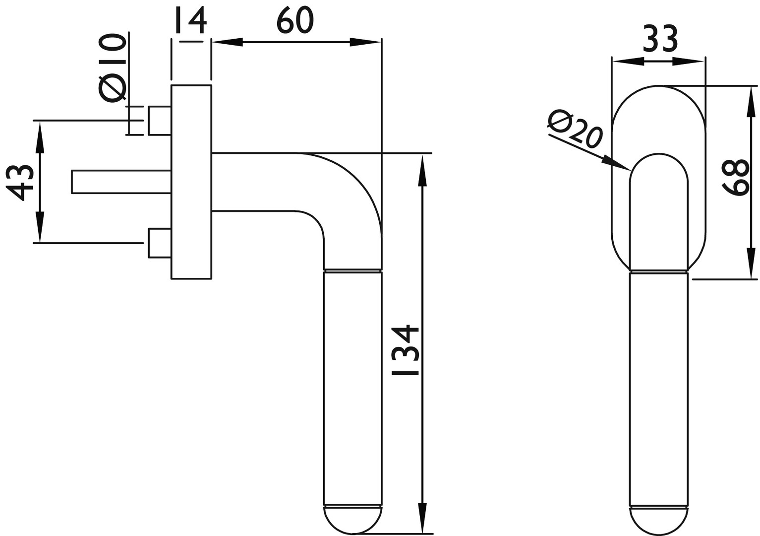 Drehkipp-Rasterolive 1110 DK CLUB Sitftlänge ca. 35 mm vorstehend Oberfl. 65 (Glanzchrom/Edelstahl matt)