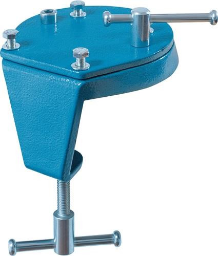 lässt sich mit wenigen Handgriffen – ohne Bohrungen von Löchern – einfach und schnell montieren und demontieren · kräftiger Spannhebel gewährleistet eine leichte und sichere Bedienung · der montierte Schraubstock ist um 360° drehbar · Führung ist vor Verschmutzung geschützt · 4 Schraubaufnahmen sind abgestimmt auf den HEUER Schraubstock 100 bzw. 120 · Made in Germany · Für den HEUER Compact Schraubstock bitte Drehklammer Größe 100 auswählen Weitere technische Eigenschaften: · Tischstärke: 10-60mm · Gewicht: 1,0kg