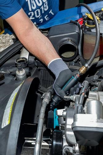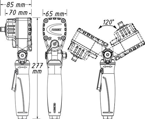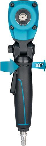 Twin Turbo Technologie: hohe Drehmomente bei kompakter Bauweise · betätigen von Bremssattelverschraubungen sowie anderer schwer erreichbarer Schraubfälle · kälteisolierender Griff · um die eigene Achse verstellbarer Griff / Trigger zur optimalen Handhabung ermöglicht Betätigung in jeder Position · Rechts-/Linkslauf: einstufig (rechts/links) · empfohlenes Drehmoment 450 Nm