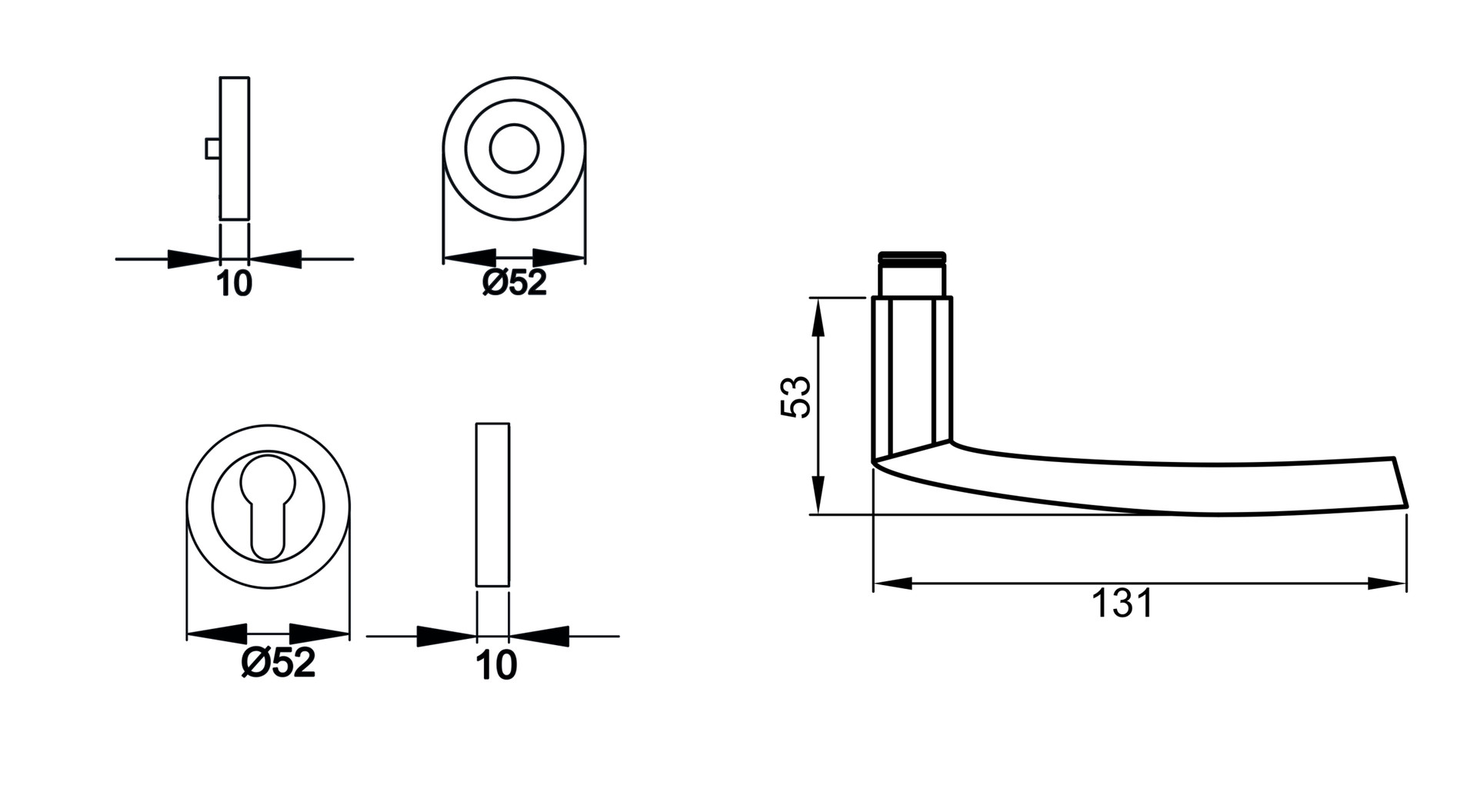 Wohnraumgarnitur Island mit 3-teiliger Drückerrosette und Hochhaltefeder.