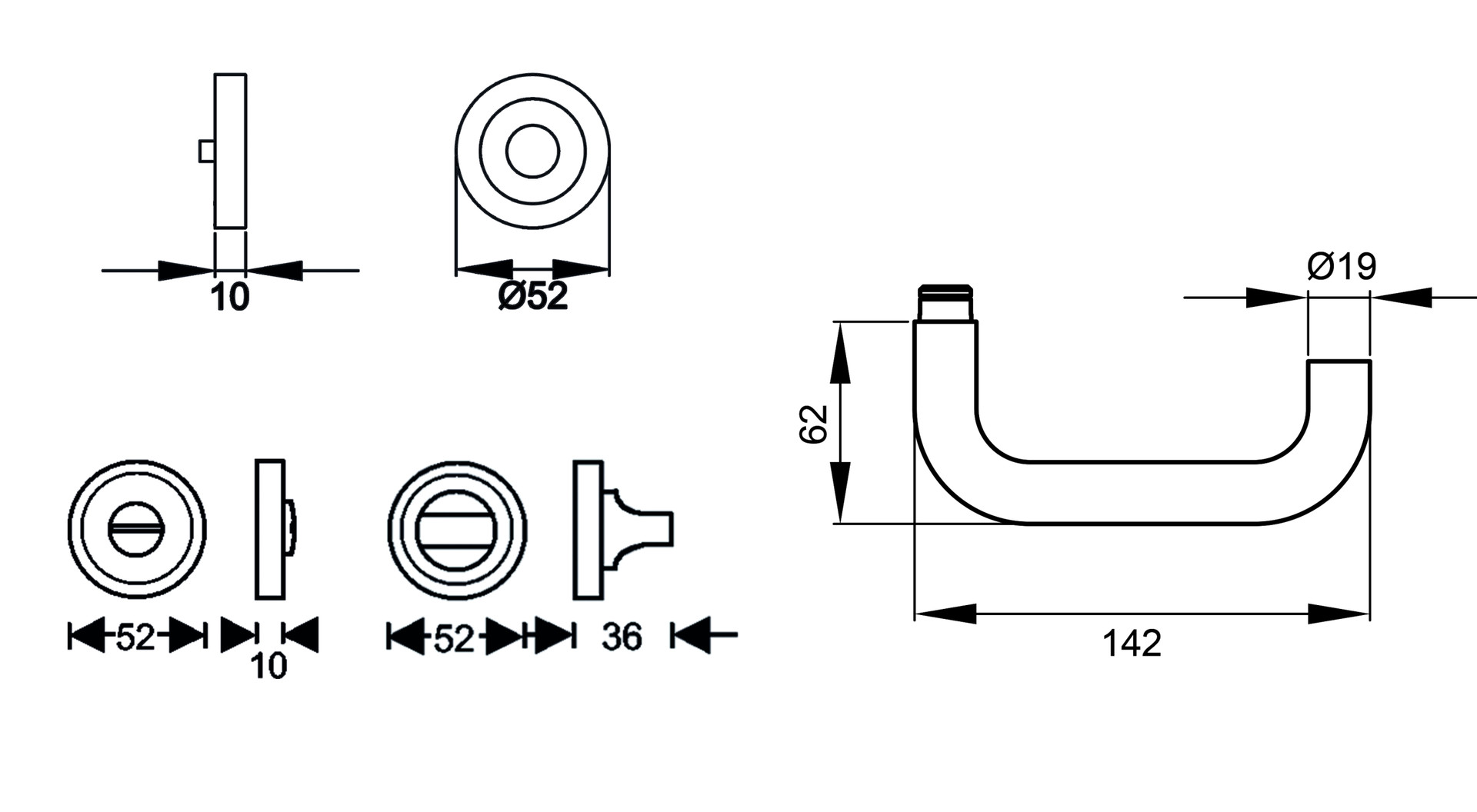 Wohnraumgarnitur Kreta mit 3-teiliger Drückerrosette und Hochhaltefeder.