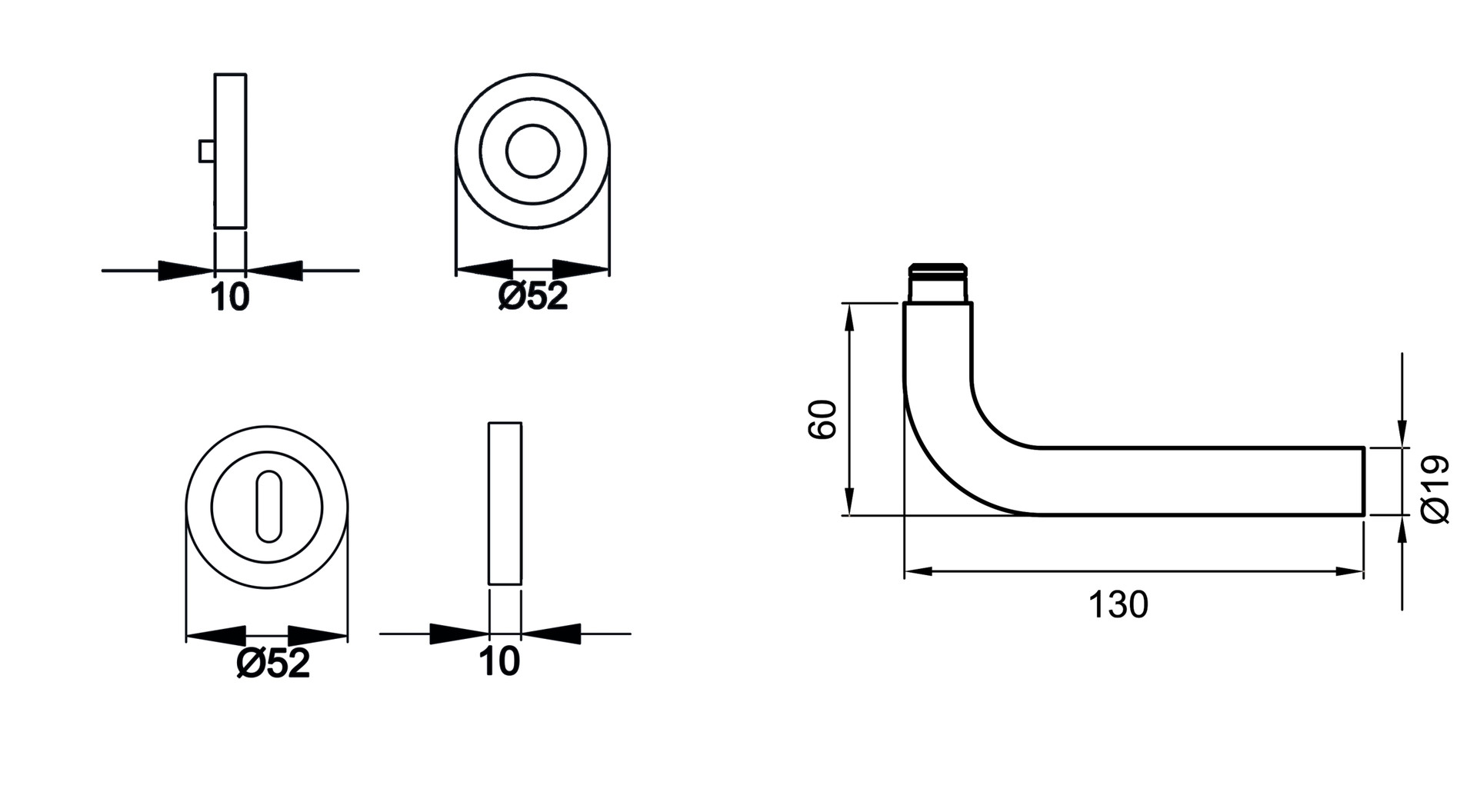Wohnraumgarnitur Malta mit 3-teiliger Drückerrosette und Hochhaltefeder.