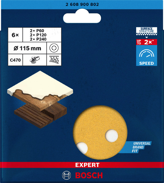 EXPERT C470 Set für Exzenterschleifer, 115 mm, 8 Löcher, K 60/120/240, 6-tlg.