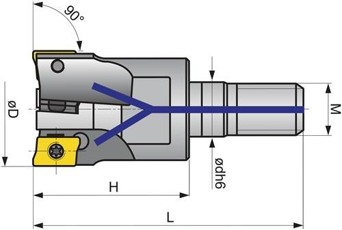 90° · vernickelte Ausführung · mit Innenkühlung · für Wendeschneidplatte APKT-10 Weitere technische Eigenschaften: · d2: 18mm · Kühlung: mit Innenkühlung · H: 30mm · Gewinde: M10 · Oberfläche: vernickelt · D: 20mm · Wendeplatte: APKT-10