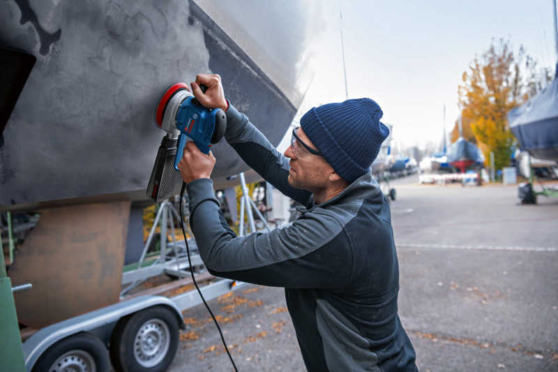 Exzenterschleifer GEX 34-150, Der GEX 34-150 Professional ist Boschs robuster, kabelgebundener 150-mm Exzenterschleifer mit hoher Abtragsleistung. Konstante Drehzahl und hohe Abtragsleistung garantieren selbst bei anspruchsvollen Oberflächen effiziente Ergebnisse. Ein Aluminiumlagerflansch gewährleistet lange Werkzeuglebensdauer und macht das Gerät zur idealen Lösung für schwierige Anwendungen. Für die Verwendung von Schleifblättern mit verschiedenen Lochrastern ist der GEX 34-150 mit einem Multiloch-Schleifteller ausgestattet, der auch zu einer deutlich stärkeren Staubabsaugung führt. Dieser Exzenterschleifer wurde zum Schleifen, Zwischenschleifen, Feinschleifen und Lackentfernen konzipiert und ist auf Holz, Furnier, Lack, Füllmasse sowie auf Mineral- und Acrylflächen einsetzbar. Er ist kompatibel mit dem Bosch Click & Clean System und einer Staubbox mit integriertem Bosch Microfilter System. Der GEX 34-150 AE Professional ist auch mit Drehzahlvorwahl und einem 150-mm-Schleifteller mit Klettsystem zur Schleifpapierbefestigung ausgestattet. Karton. Schleifteller (150 mm) (2 608 900 007). 1 x Mehrlochschleifblatt C470, Best for Wood + Paint, 120 (separat erhältlich als 5er-Pack: 2 608 608 X85). 1 x Papierstaubbeutel (separat als 3er-Pack erhältlich: 2 605 411 067). 1 x Absaugadapter (2 600 306 007)