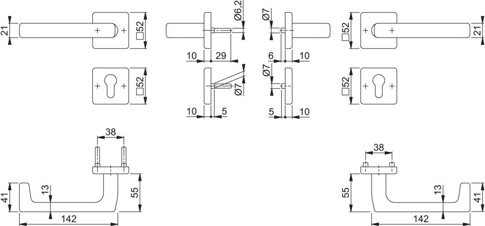 | Länge Drückerrosette (außen) | 52 mm |