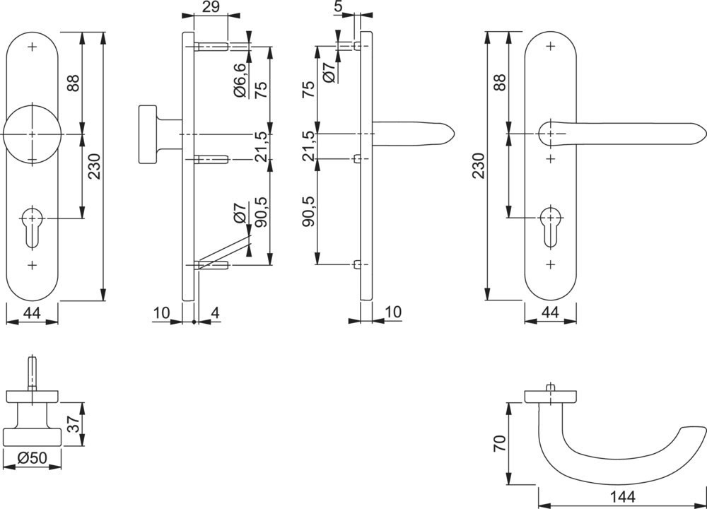 | Durchmesser Türgriff (außen) | 50 mm |