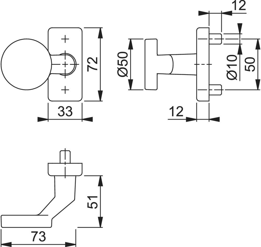 | Höhe Drückerrosette (außen) | 12 MMT |