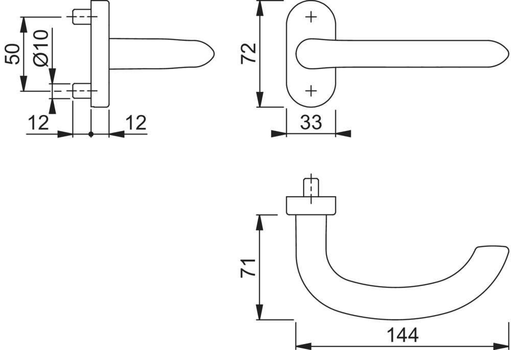 | Höhe Drückerrosette (innen) | 12 MMT |