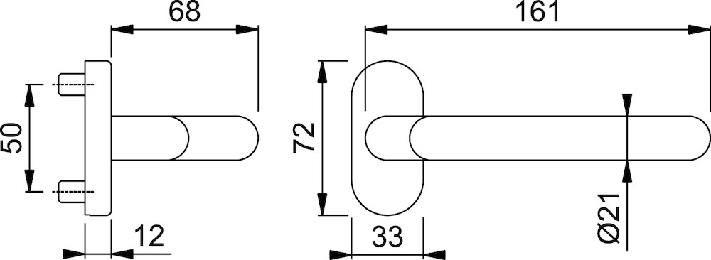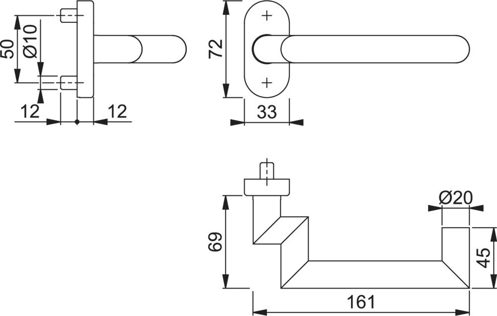 | Höhe Drückerrosette (innen) | 12 MMT |
