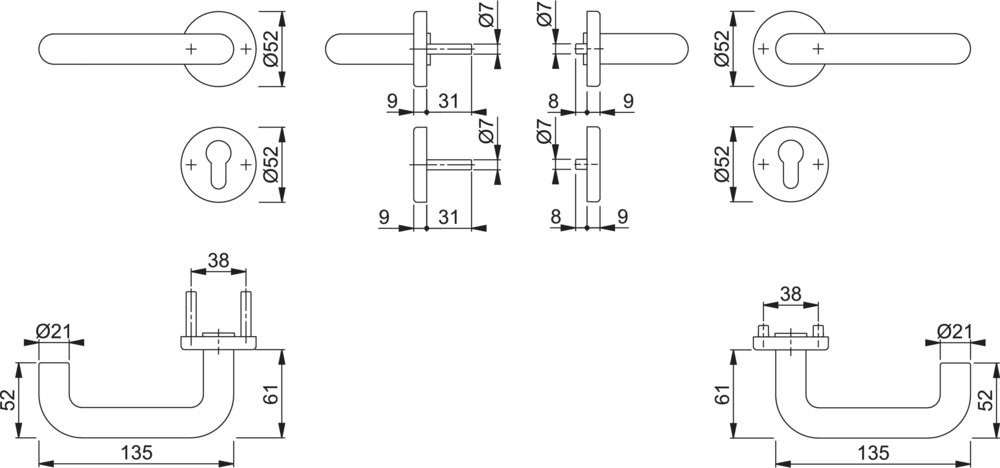 | Durchmesser Türgriff (außen) | 21 mm |